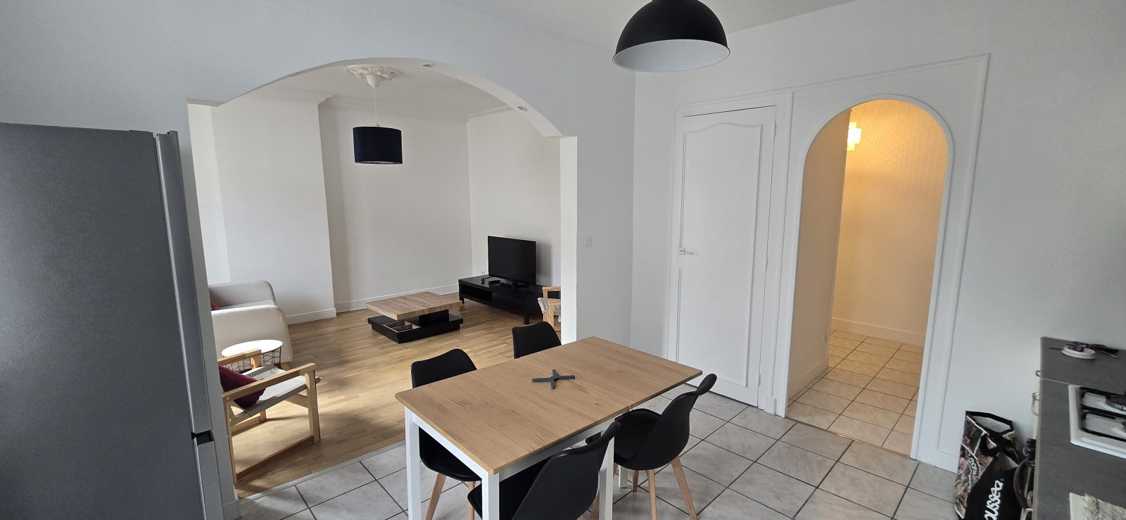- Cuisine ouverte, entièrement équipée (four, plaques de cuisson, hotte)